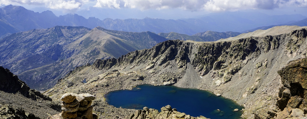 Pochod pro světlušku, tak nějak vypadal brzy ráno zástup stoupající k Refuge de l'Erco pod Monte Cinto (2706 m). Snídaně u chaty už byla na slunci a následný výstup na vrchol byl ve znamení potu a příjemného chladivého větříku. Začínalo se mezi trnitými keři a sutí, pak už skoro čistě po skále. Na Cinto vede z druhé strany odbočka z GR20, hustě značená červenými puntíky. Tak jsme je dychtivě vyhlíželi, protože ze strany, ze které jsme šli my, byli jen lehce zmatení kamenní můžíci. O půl jedenácté všichni zdárně dobyli vrchol a ani tam jsme se moc nezdržovali, protože na odpoledne byla vydaná výstraha kvůli bouřkám. Abychom nescházeli stejnou cestou vzali jsme to ještě, k radosti nejmladších členů výpravy, kolem jezera Lac du Cinto, ke kterému se navíc dolů jede kus suťoviskem a je to docela zábava, skoro jako se bořit do sněhu. Jezero bylo neskutečně studené, proto nechápu, že tam někteří skočili i víc než dvakrát. Mě byla zima a to jsem tam tentokrát namočila jen nohy. Od Lac du Cinto vedou dolů dvě trasy, levá a pravá. Po zkušenosti z minulých let, že pravá strana občas končí skalní stěnou jsme to vzali bloudivou levou, ale o chlup lepší, cestou. Závěrečný sestup od chaty Erco prašnou pěšinou přes pastviny už byl dost na morál. Bylo vedro a cestička nekončila. Rádi jsme došli do kempu. Tam jsme návrat patřičně oslavili vínem a společenskými hrami a dokonce došlo i na moje ukulele. Ještě, že jsem se neslyšela, jinak bych se asi musela stydět.